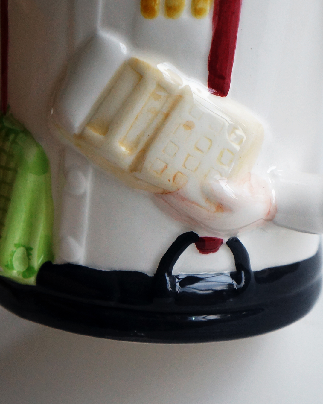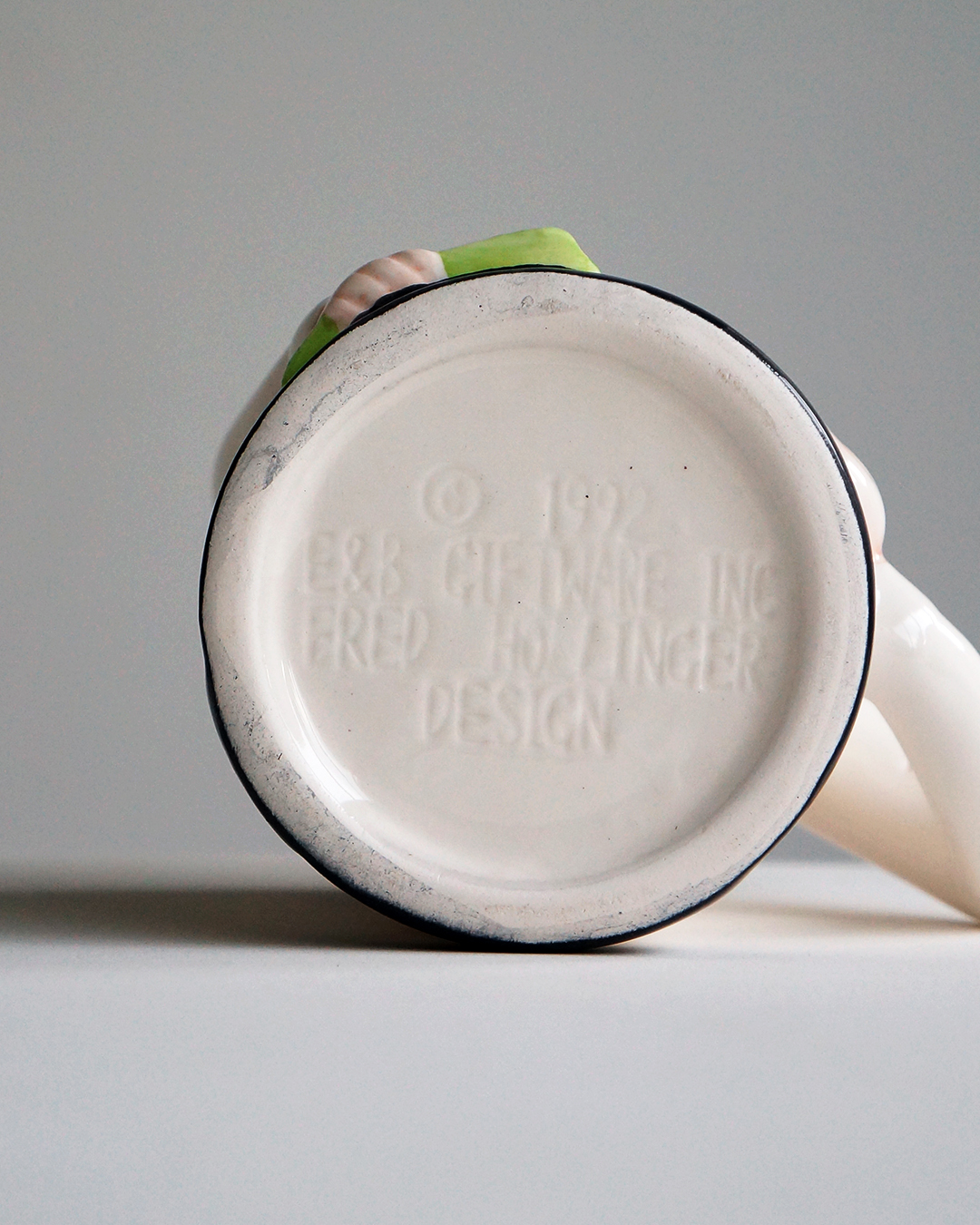 90년대 초 미국에서 판매했던 귀여운 세라믹 머그입니다. 손으로 칠한 투박한 그림이 재미있습니다. 사용하지 않고 상자와 함께 잘 보관된 깨끗한 상태입니다.