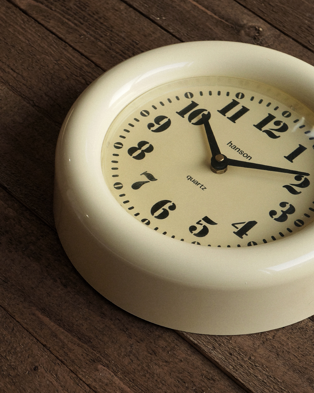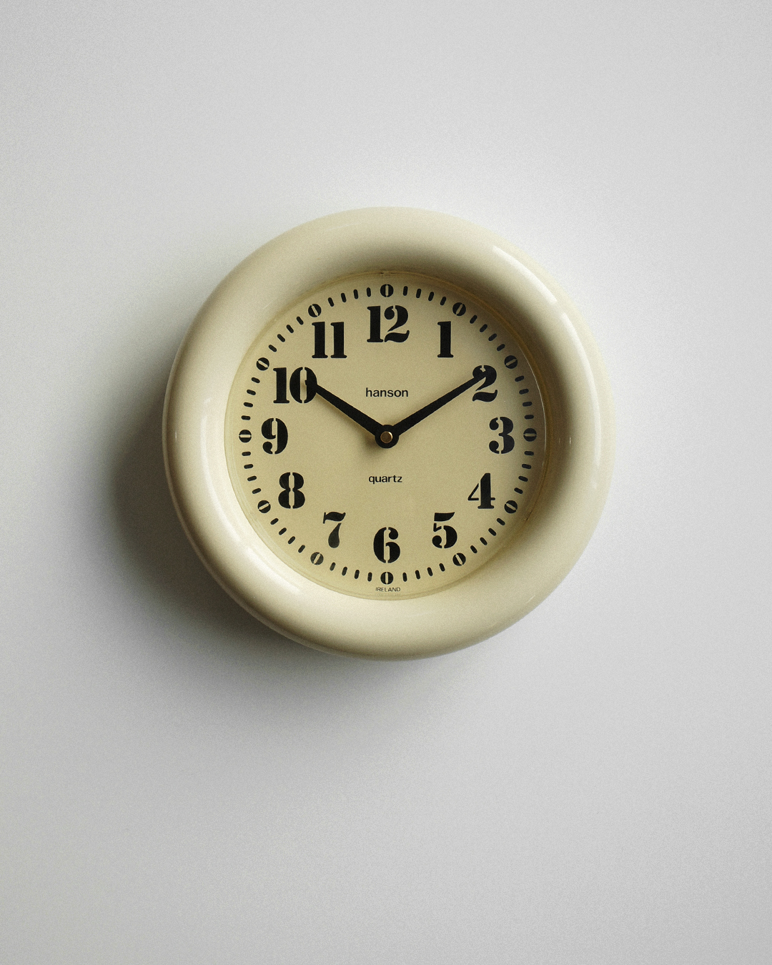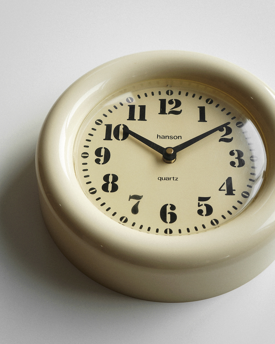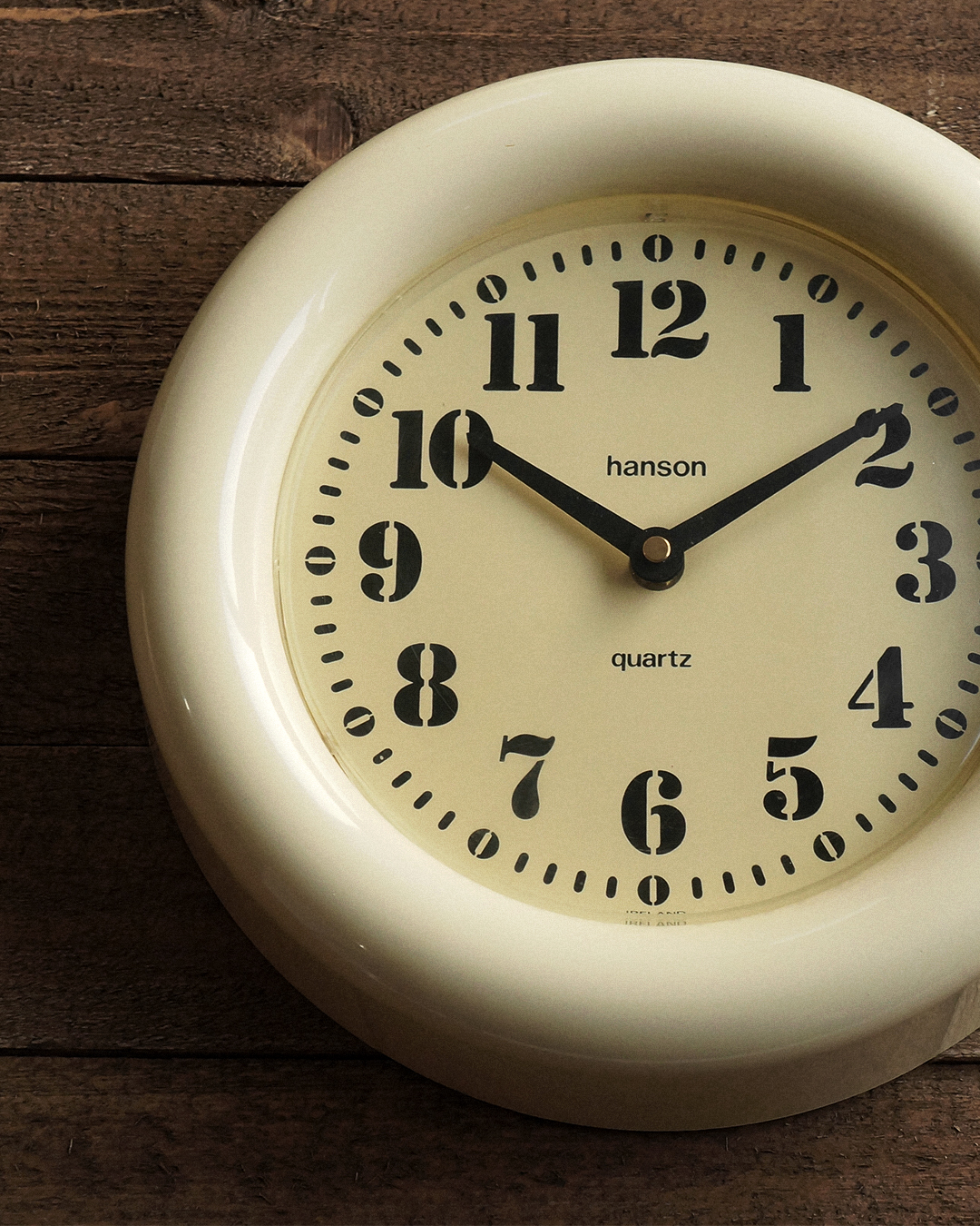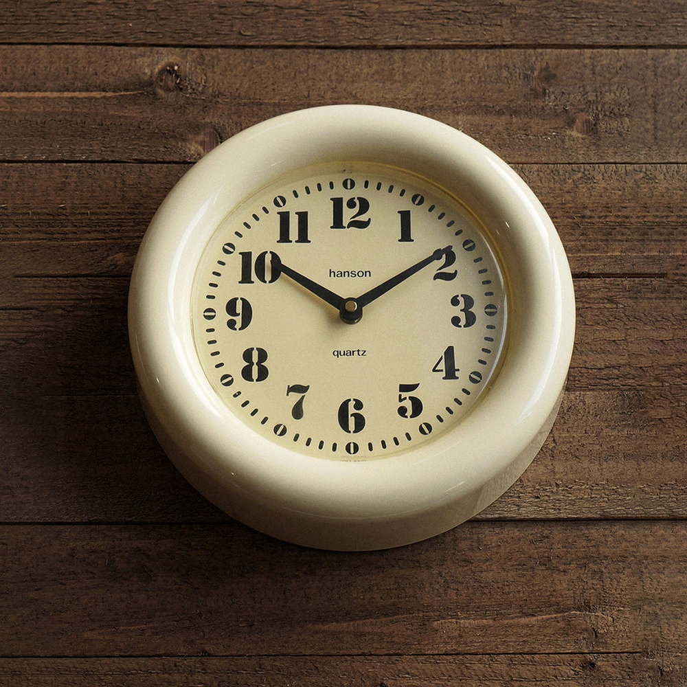 80년대 영국에서 사용했던 빈티지 벽시계입니다. 바늘까지 모든 부속이 플라스틱으로 만들어진 가벼운 제품이네요. 전체적으로 변색이 진행되어서 오래된 느낌이 잘 묻어납니다. 빈티지답게 초침이 움직이는 소리에 존재감이 있습니다. 정적이 필요한 공간보다는 적당한 소음도 잘 어울리는 곳에 두면 좋겠습니다. 간단한 분해 후 구석구석 깨끗하게 세척을 마치고 점검한 상태이며 테스트에 사용한 AA 건전지를 넣어서 판매합니다.